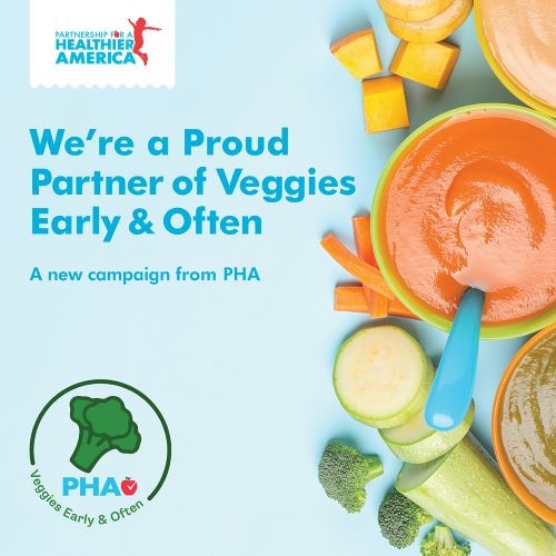 We are thrilled to announce our involvement as a partner for the national Veggies Early and Often campaign led by the Partnership for a Healthier America (PHA). Our goal is to raise the next generation of veggie lovers, to ensure your little one becomes a healthy, happy, and adventurous eater, for life.