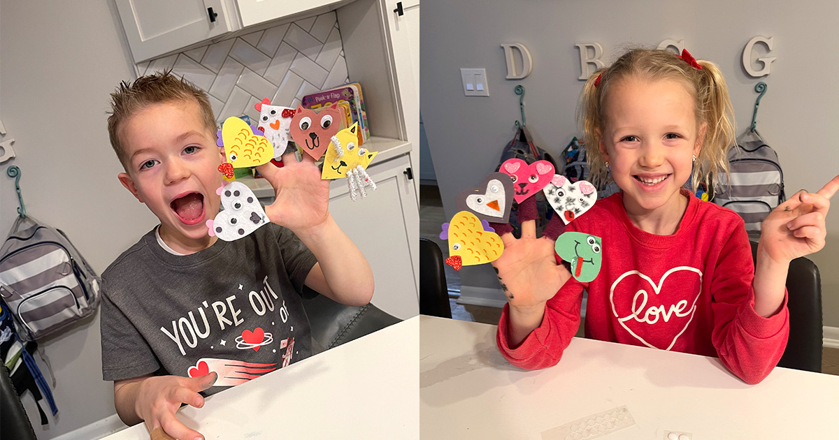 One creative way to do so is to dig into a new craft inspired by hearts of every size. We’ll be making unique Valentine’s Day Finger Puppets together. There’s no limit to what you can create if you reimagine your favorite animals, creatures, or faces using hearts as your primary shape.