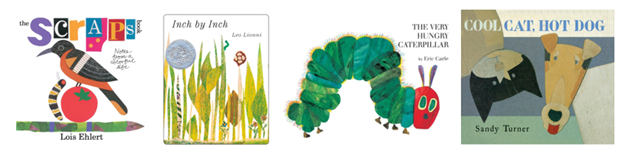 Many artists use collage as a technique for illustrating children’s books. Eric Carle, Leo Lionni, Lois Ehlert, Ezra Jack Keats, and Bryan Collier are just a few well-known authors and illustrators who do.