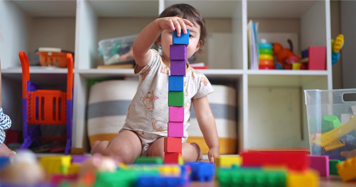 - Put away toys together, starting with infants. Narrate your actions. Let’s put the balls inside the basket. I found two books to put on the shelf.